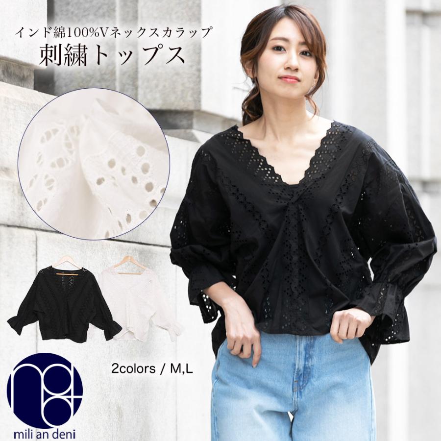 セール レディース トップス インド綿 100 Vネック 刺繍tops ブラウス シャツ ミリアンデニ Mili An Deni D Fashion